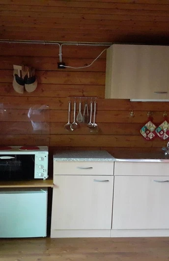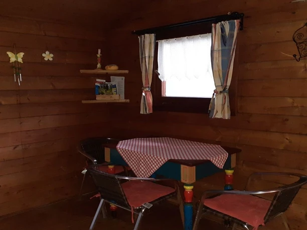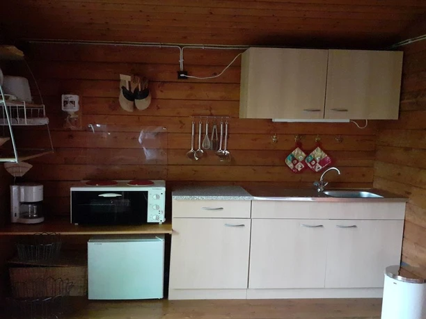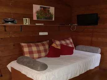 Die Ausstattung ist einfach, aber an alles Wichtige ist gedacht (DU/WC, Kochgelegenheit, kl. Kühlschrank, Radio). Im Schlafraum befindet sich ein Etagenbett und im Wohnraum noch ein Einzelbett.