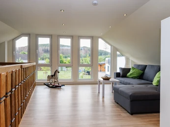 Unser Luxus-Ferienhaus ist für einen Urlaub mit der Familie optimal geeignet. Auf Anfrage besteht die Möglichkeit, bis zu acht Gäste in Betten unterzubringen. Zwei weitere Personen können zusätzlich mit Luftmatratzen untergebracht werden oder ein Baby im Reisebett. Auf der Gesamtwohnfläche von 140 Quadratmetern befinden sich vier getrennte Schlafräume, ein Wohn-/Essbereich mit offenem Kamin, zwei Badezimmer sowie im Obergeschoss eine Galerie mit Sofa und Leseecke. Auf dem ausgebauten Dachboden sind zwei Schlafräume. Und die anderen zwei befinden sich im Erdgeschoss. Im Keller befinden sich die Sauna, das zweite Badezimmer und die Garage.