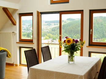 Die Wohnung liegt im kleinen Ortsteil Müsse zwischen Aue und Wingeshausen. Rothaarsteig und Wisent-Wildnis befinden sich in unmittelbarer Nähe. Bis Winterberg sind es 34 km über eine von Bergen, Wäldern und Wiesen umgebene ländliche Streck