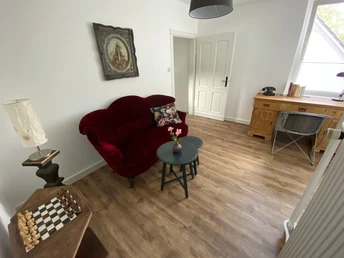 Die in 2020 vollständig sanierte und neu eingerichtete Ferienwohnung ist komfortabel ausgestattet. Sie verfügt über ein großes Doppelschlafzimmer sowie zwei Einzelschlafräume, ein Bad mit Badewanne mit Duschgelegenheit sowie ein separates WC. Die moderne Einbauküche ist ausgestattet mit Spülmaschine, Kühlschrank und separatem Gefrierfach, Mikrowelle, Cerankochfeld, Backofen, Kaffeemaschine, Wasserkocher und Toaster. Das große Wohnzimmer mit SAT-TV, Digitalradio/Bluetooth-Box und Blick auf Schloß Wittgenstein lädt zum Verweilen ein. Im angrenzenden Schachzimmer können Sie lesen oder am Schreibtisch bei Bedarf auch arbeiten, WLAN mit Internetzugang steht kostenlos zur Verfügung.