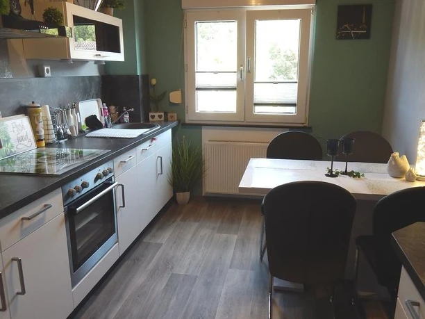Wohnung im 1. Obergeschoss: ca. 70 m², im August 2020 neu und hochwertig eingerichtete Ferienwohnung. Schlafraum mit Boxspringbett, Zusatzzimmer mit Schlafsofa, Wohnzimmer mit Schlafsofa für 2 weitere Personen, komplett ausgestattete Küche einschließlich Spülmaschine, Badezimmer mit Wanne/WC. Eigene, gemütliche Sitzecke im großen Garten vorhanden.