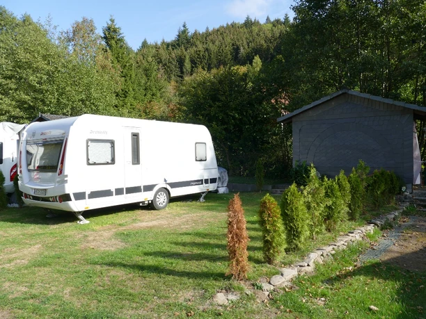 Liebevoll gepflegter Campingplatz mit 30 Plätzen für Wohnmobile, Wohnwagen sowie Zelte auf einem Areal von ca. 5000 qm.