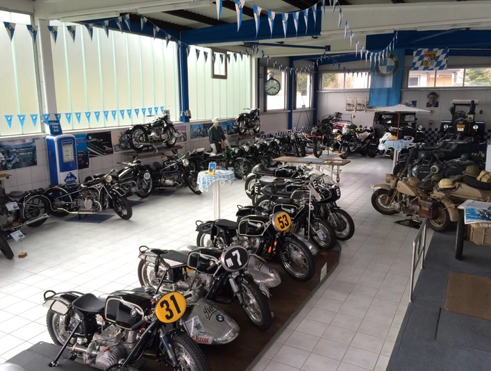Annähernd 40 BMW-Motorräder, Gespanne ab dem Baujahr 1923, 2 Mercedes von 1928 und 1935, 1 Motorwagen von 1900, 1 Kettenkrad – 1 BMW-Kübelwagen von 1937 – 1 Lanz-Bulldog von 1938 Alle Fahrzeuge sind vollständig restauriert, voll funktionsfähig und in sehr gutem Zustand!