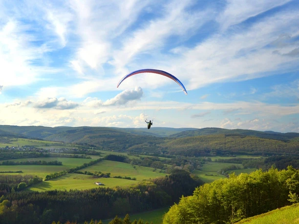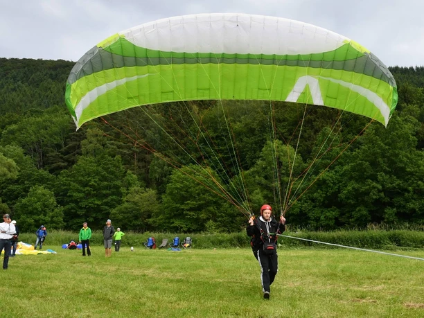 Der Unterschied zum Fallschirmspringen ist, dass man nicht springt! Gestartet wird auf den eigenen Füßen mit bereits flugfähigem Schirm. Man gleitet durch die Luft und nutzt die Thermik (aufsteigende warme Luftmassenpakete), um oben zu bleiben. Gelenkt wird der Gleitschirm über zwei Steuerleinen. Man fliegt wohin man will.