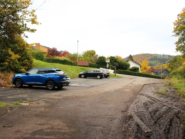 Kleiner geteerter Parkplatz mit ca. 7 Stellplätzen