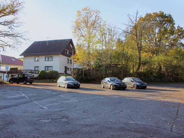 Großer geteerter Parkplatz mit ca. 25 Stellplätzen