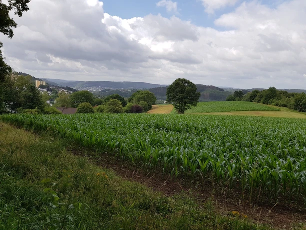 In Dillnhütten quert der Weg das Ferndorftal. Es geht auf die andere Seite der Bundesstraße B54 und weiter entlang der ,Ley‘ in nördlicher Richtung über die ,Sohlbacher Alm‘ zum oberen Ende des Lückenbachtals. Von dort aus führt der Weg durch das Lückenbachtal wieder hinab ins Ferndorftal, vorbei an einem ehemaligen Köhlerplatz mit drei Kohlenmeilerstellen (zwei davon sind freigelegt) und weiter entlang des Geländes der ehemaligen ,Kreuztaler Hütte‘ und am ,Hofgut Langenau‘. Nach erneutem Überqueren der Bundesstraße B54 und der Bahnlinie führt der Weg durch den ,Liesewald‘ in Richtung ,Ferndorfer Höhe‘. Kurz vor Erreichen der ,Ferndorfer Höhe‘ verläuft der Wanderweg parallel zu einem alten Fuhrmannsweg hinab in das wunderschöne Mattenbachtal. Dabei passiert man einen alten Eichenbestand (21 Stück), der als einziges Naturdenkmal im Bereich der ,Wöllnwees‘ in Buschhütten ausgewiesen ist. Vorbei am Warmwasserfreibad Buschhütten geht es wieder zurück zum Ausgangspunkt der Wanderung.
