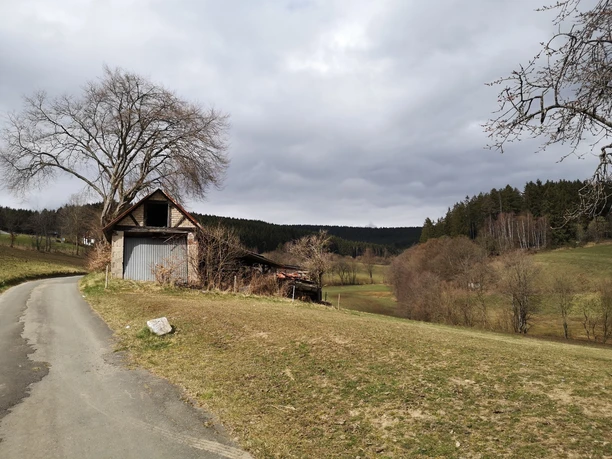 The path passes through the village of Rüppershausen and leads us towards the model airfield above Oberndorf. It’s worth making a short stop there to enjoy the panoramic view of the surrounding villages. Then it continues to the Rückershausen ski area with its unique winter sports facility in the Siegen-Wittgenstein district, consisting of three jumps, a natural ski jump, a matt jump, and a small jumping facility. At the hiking car park, seats in front of the ski hut invite you to rest and catch a view of the three jumping facilities.