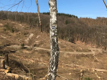 Starting above Oberfischbach, we head toward Niederndorf. We turn left onto Johannes-Groos-Straße, cross the Übach, and continue on Fürst-Moritz-Straße. Straight ahead, we come directly to a path into nature. We follow this upwards past the tunnel to the mining area.