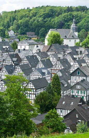 In the midst of the extensive forests of Siegerland, the picturesque town of Freudenberg awaits to be discovered! The narrow alleys of the old town with the venerable cobblestone pavement, but above all the pretty black-and-white half-timbered houses, take the visitor on a journey back to the Middle Ages.