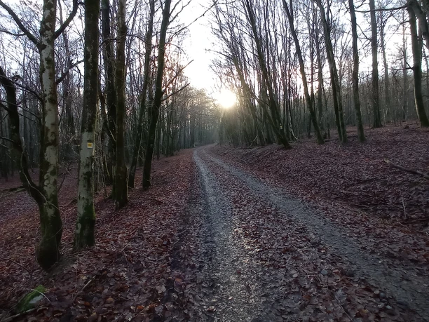 Starting from the WP at the natural pond, the first 1.5 - 2.5 km ascend about 220 meters. At its "summit," a short (signposted) forest path leads to a geological peculiarity of the region: the "Großer Stein" - a true natural spectacle! According to legend, Siegfried Hick buried a giant in battle here with the basalt boulders found here. Back on the trail marked with Ho3, the route continues over a bridge crossing the B54. Following the path marking to the right, hikers and cyclists enjoy a new panorama: due to the massive tree blowdown (bark beetles have also left traces here), a previously impossible view opens into the Lahn Valley. The now gently downhill path from here allows your thoughts to wander and lets you fully enjoy the forest sections. Upon reaching the section "Obere Sang," take a sharp right turn heading back toward Holzhausen.