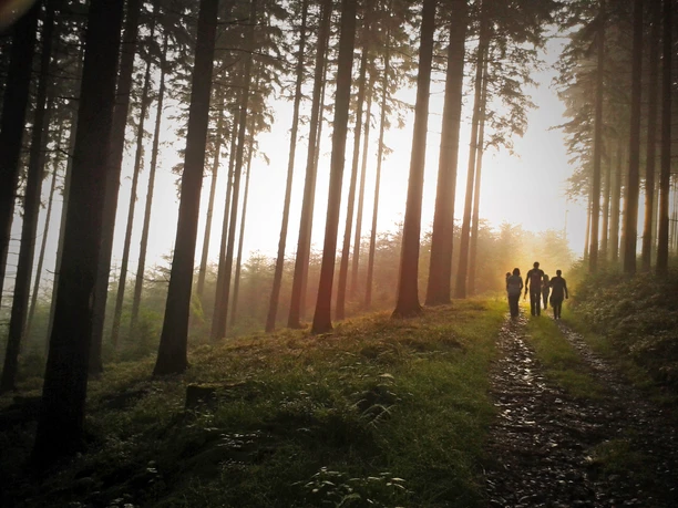 From the Haus des Gastes with its remarkable Mushroom Museum, we stroll through the picturesque old town of Bad Laasphe up to the mountain hut "Zur Teufelskanzel". There, on the heights above the Laasphe valley, awaits a story from the Laasphe legend source, with a view of the majestic ancestral castle of the Counts of Wittgenstein. Shortly afterwards, the actual circular route begins, which we follow slowly uphill along the left slope of the Laasphe valley to the Neesbach valley. We are accompanied by the legend of the wild hunter in the Botzebach valley and the unfortunate Countess Elisabeth Charlotte. In a mystical mood and after a calming look at the idyllic Nessbach valley, we hike up to the plateau below the Hainrot, where a seating area on a forest meadow under magnificent chestnut trees invites you to rest halfway. Through beautiful beech high forest, we start the return journey above the Puderbach valley and learn some things about Boniface's stay in Puderbach. Shortly before the Krautkopf, the enchanted forest opens, and we have a beautiful view of the Wittgenstein mountain landscape. Then we reach the impressive Teufelskanzel, from where the witches took flight to the Teufelslücken. With another impressive view of Wittgenstein Castle, the route goes back through forest and past meadows to Bad Laasphe.