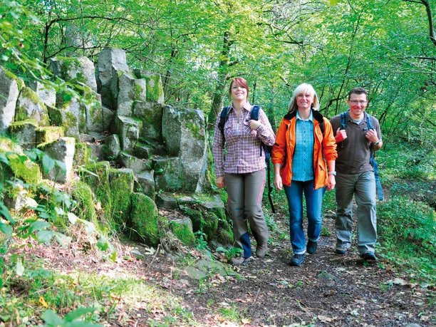 Below Leyenkopf and Rassberg, we continue hiking. We cross the Bähnchensweg and reach the district of Wiederstein via the spoil tip "Junger Löwe".Â