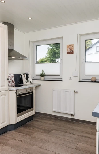 Mit Liebe zum Detail lädt dieses Haus zum Verweilen ein. Es bietet eine Terrasse mit schöner Aussicht, einen Garten mit Spielgeräten und eine Sauna zum Entspannen. Und direkt vor der Haustür beginnt die freie Natur. Der Wald und diverse Wanderwege sind nur wenige Gehminuten entfernt. Zu Fuß erreichen Sie den Ortskern in ca. 15 Minuten, Bad Berleburg liegt in nur fünf Kilometer Entfernung.