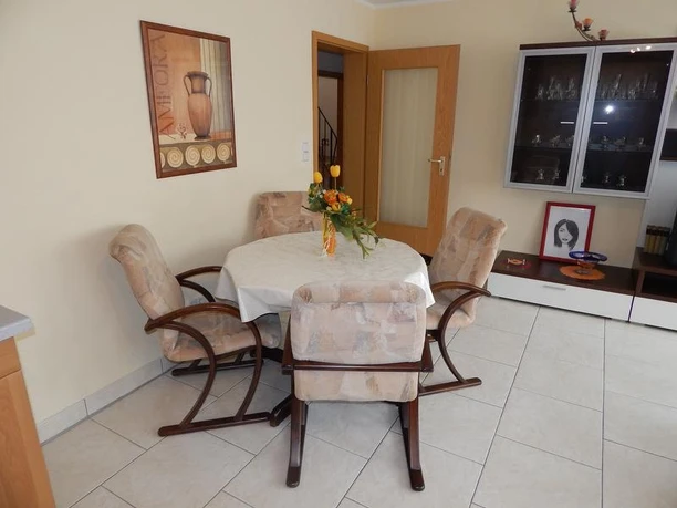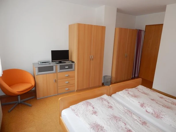 Ca 55m² große Erdgeschosswohnung für zwei Personen mit eigenem Eingang. Das große Schlafzimmer verfügt über ein Doppelbett, welches auch zu zwei Einzelbetten ausgezogen werden kann, zwei mehrteilige Kleiderschränke sowie einen kleinen Fernseher. Es kann komplett abgedunkelt werden. Der Wohnraum mit Fußbodenheizung ist ein offenes Wohn- und Esszimmer mit Esstisch und Stühlen, zwei Sofas und einem großen Fernseher. Die angrenzende Küche ist hell und freundlich. Sie ist mit eigenem Kühlschrank, externer Kühltruhe, Mikrowelle, Kaffeemaschine, Besteck und Geschirr für mehrere Personen ausgestattet. Badezimmer mit Dusche und WC. Im Flur gibt es eine kleine Raucherecke mit Sitzgelegenheit.