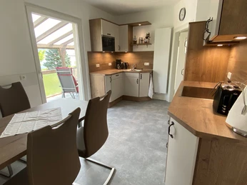 Die in 2020 vollständig sanierte und neu eingerichtete Ferienwohnung ist komfortabel ausgestattet. Sie verfügt über ein großes Doppelschlafzimmer sowie zwei Einzelschlafräume, ein Bad mit Badewanne mit Duschgelegenheit sowie ein separates WC. Die moderne Einbauküche ist ausgestattet mit Spülmaschine, Kühlschrank und separatem Gefrierfach, Mikrowelle, Cerankochfeld, Backofen, Kaffeemaschine, Wasserkocher und Toaster. Das große Wohnzimmer mit SAT-TV, Digitalradio/Bluetooth-Box und Blick auf Schloß Wittgenstein lädt zum Verweilen ein. Im angrenzenden Schachzimmer können Sie lesen oder am Schreibtisch bei Bedarf auch arbeiten, WLAN mit Internetzugang steht kostenlos zur Verfügung.