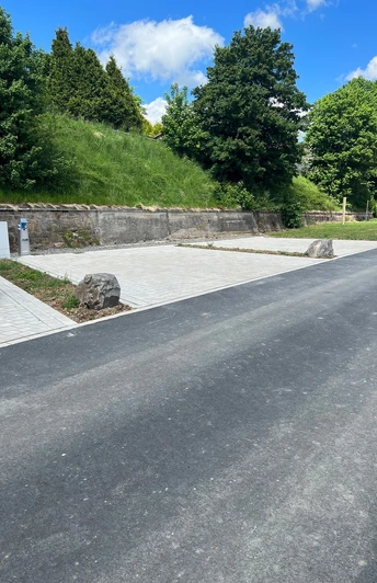 gepflastert. Ausgestattet sind die Stellplätze mit Stromanschlüssen und