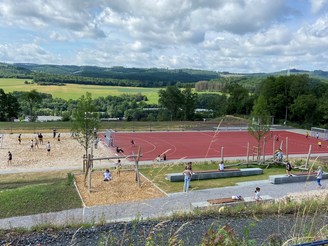 Aktuell wird der Platz um einen Kletter- und Spielhang mit integrierter Rutsche erweitert.