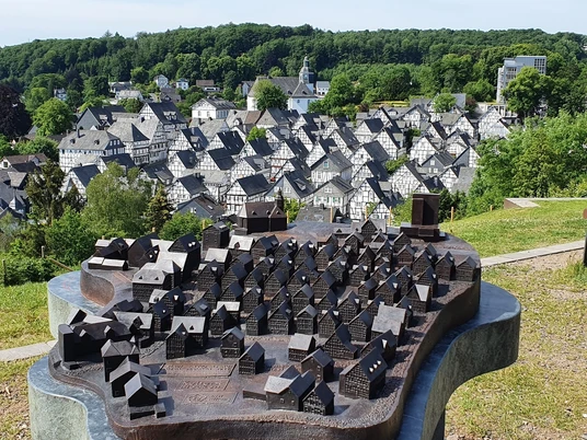 Die rotierende Scheibe (Sehen), der Summstein (Hören und Fühlen), das Oktoskop (Sehen) und das Tastmodell (Sehen und Fühlen) laden hoch über den Dächern Freudenbergs zu einer besonderen Sinneserfahrung ein. Das bronzene Tastmodell, dass ein detailgetreues, dreidimensionales Abbild des Alten Fleckens ist, gibt auch Menschen mit Sehbehinderungen einen guten Eindruck von der Altstadt.