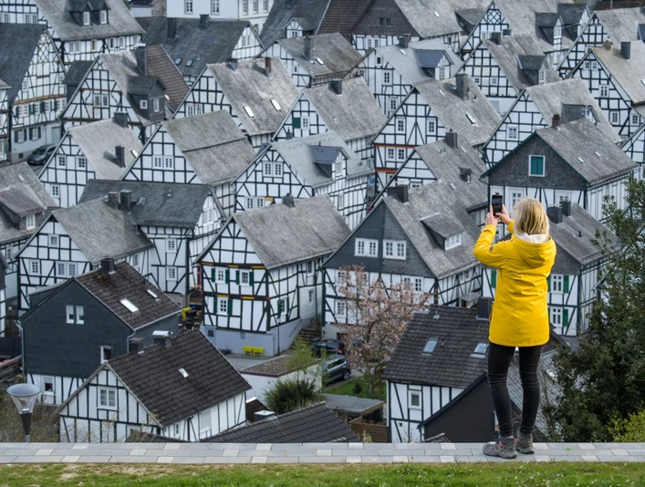 Der berühmte Fotoblick bietet das beste Panorama auf den historischen Stadtkern "Alter Flecken". Eingebettet in die herrliche Natur Freudenbergs reihen sich über 80 schwarz-weiße Fachwerkhäuser in einzigartigem Verbund.