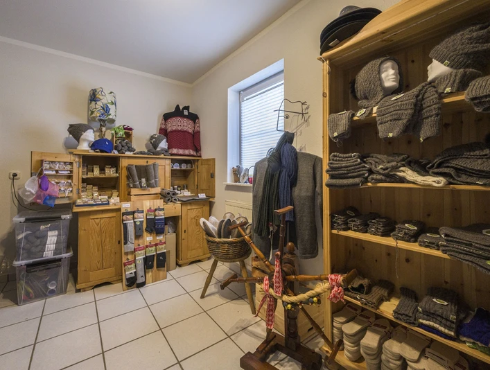 In dem Hofladen finden Sie viele schöne Alpakawollprodukte, hergestellt aus dem Vlies der eigenen Tiere.
