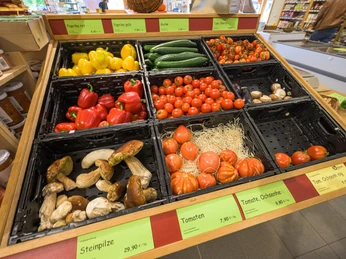 Die erzeugten Demeter-Produkte finden vor Ort den Weg in den Hofladen.