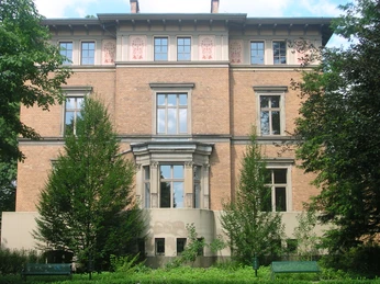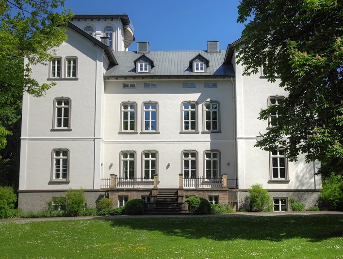 Die Weiße Villa, gebaut ab 1860, ein verputzter Backsteinbau mit einzigartigen Ausstattungsdetails. Das vom Baustil der Renaissance inspirierte Bauwerk wurde von Heinrich Adolf Dresler in der zweiten Hälfte der 1860er Jahre errichtet und ist somit das älteste Gebäude der Parkanlage. Die Architektur des neuen Familiensitzes sollte Herrschaftspräsenz ausdrücken. Der Saal des Weißen Hauses bot genügend Platz für feierliche Anlässe, wie z.B. Maskenbälle, die für die Töchter Dreslers veranstaltet wurden. Daneben konnte man sich in die üppig dekorierten Wohnzimmer, dem "Grünen" und "Blauen" Zimmer, zurückziehen. Im zweiten Obergeschoss wohnten die Dienstmädchen und andere Angestellte. In der Weißen Villa finden heute Veranstaltungen von Volkshochschule, Musik- und Jugendkunstschule statt. Der Terrassensaal mit Stuckdecken und Kronleuchtern bietet einen stilvollen Rahmen für festliche Anlässe. Der Große Saal bietet Platz für bis zu 100 Gäste.