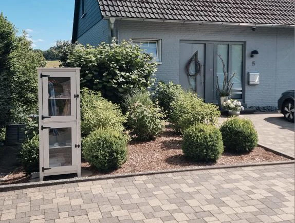 Ein Parkplatz ist direkt vor dem SB-Schränkchen zu finden.