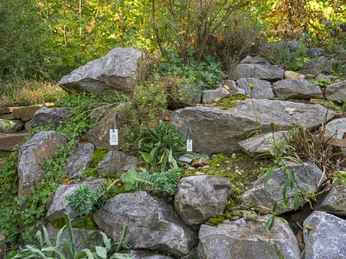 Der Natur- und Skulpturenpark enthält rund 30 Ausstellungsobjekte (Metall- und Holzskulpturen) und eine Sammlung vorwiegend einheimischer Pflanzen verschiedener Biotoptypen (über 500, davon ca.60 Gehölze). Die Biotoplandschaft setzt sich zusammen aus Kalk-Buchenwald (Dillenburger Raum), Basalt-Buchenwald (Westerwald), dem sehr artenarmen Siegerländer Lehmschieferwald, Mittelgebirgs-Schluchtwald, sauren Magerwiesen und Feuchtbiotopen.