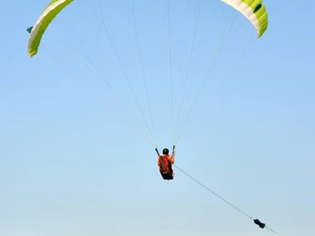Der Unterschied zum Fallschirmspringen ist, dass man nicht springt! Gestartet wird auf den eigenen Füßen mit bereits flugfähigem Schirm. Man gleitet durch die Luft und nutzt die Thermik (aufsteigende warme Luftmassenpakete), um oben zu bleiben. Gelenkt wird der Gleitschirm über zwei Steuerleinen. Man fliegt wohin man will.