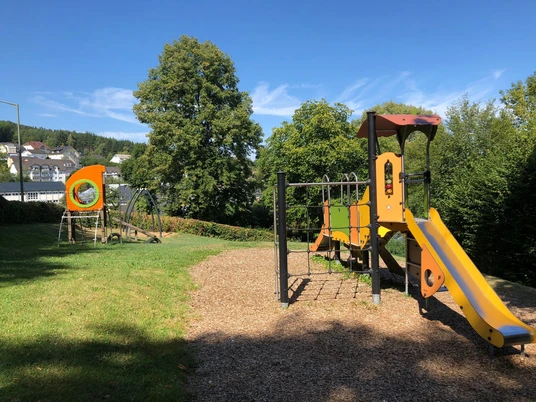 Oberhalb des Spielplatzes befinden sich einige Stellplätze im Kurvenbereich Hochstraße / Auf der Heister