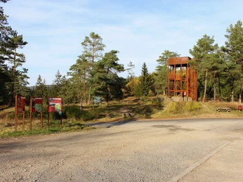 Der 8,5 Meter hohe Altenbergturm bietet einen weiten Rundumblick über das Grubengelände – ideal für eine kurze Rast mit Ausblick. Ein Rastplatz mit Bänken und Mülleimer ist ebenfalls vorhanden.
