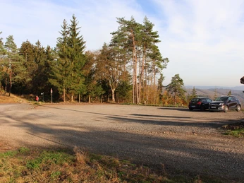 Mittelgroßer Schotterparkplatz mit ca. 15 Stellplätzen