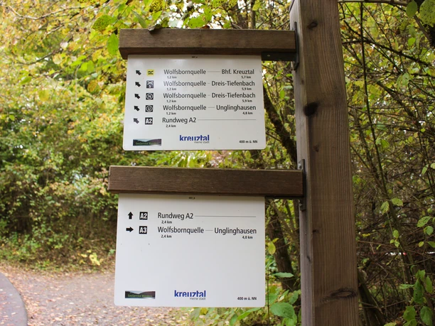 Der Wanderparkplatz befindet sich direkt an der L729 auf der Kredenbacher Höhe in Richtung Unglinghausen. Von hier aus bietet das Wanderleitsystem sowie eine große Wandertafel umfassende Informationen zu den Wanderzielen in der näheren und weiteren Umgebung sowie zur Ortschaft Kredenbach selbst.