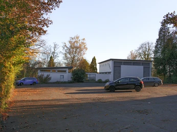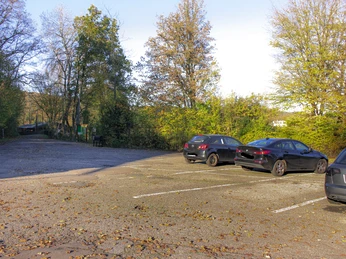 Großer geteerter Parkplatz mit ca. 25 Stellplätzen