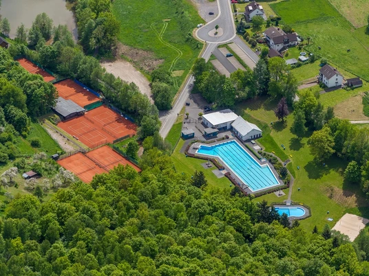 Ausstattung: 50 m – Becken, 1 m – Sprungbrett, Schwalldusche, Wasserrutschen, Planschbecken m. Wasserpilz, Kiosk, großzügige Liegewiese, Strandkorb, Sonnenliegen zur Ausleihe, Schachspielfeld, Beachvolleyballfeld, E-Bike-Ladestation, W-Lan kostenlos