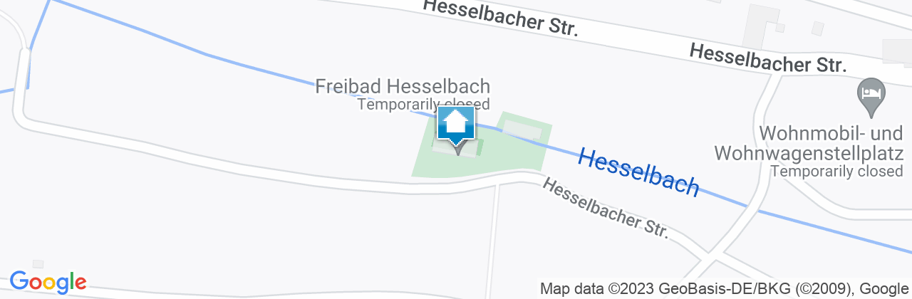 Der Stellplatz befindet sich auf dem Parkplatz des Naturfreibads in Hesselbach.