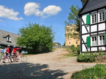 Immer dem A1 folgend erreichen Sie schließlich die Ginsburg, Hilchenbacher Wahrzeichen und deutsch-holländische Gedenkstätte. 1568 startete Wilhelm von Oranien hier den niederländischen Befreiungskampf. Vom restaurierten Turm der Ruine haben Sie bei klarem Wetter einen einzigartigen Ausblick über das Siegerland und die Legende vom Raubritter Hans Hübner wird Ihre Kinder sicher begeistern. Nach einer Stärkung in der Ginsburgstube geht es auf urigen Waldwegen bergauf zu unserem nächsten Etappenziel: dem Naturspielplatz Ginsberger Heide. Hier können sich die Kinder noch einmal richtig austoben oder in der nahegelegenen Natur-Erlebnisstation spannende Fragen zum Thema Wald erforschen. Der Spielplatz bietet auch die ideale Gelegenheit für ein Picknick in freier Natur (offenes Feuer und Grillen sind nicht gestattet) oder Sie legen eine Rast im Restaurant Ginsberger Heide ein.
