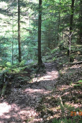 Nachdem wir über den Bergrücken wieder im Tal angekommen sind, gehen wir wieder rechts bergauf. Nach ca. 200 m biegen wir links in den Waldweg ein. Diesem folgen wir bis zum Radweg. (Wer sich traut, kann auch unten durchs Tal wandern. Dieser Teil der Strecke ist allerdings in stückweise sehr nass.) Oben auf dem Weg angekommen, gehen wir links zum Radweg. Die Schönheit der Natur entschädigt uns für die Strapazen. Wer genügend Zeit mitbringt, kann unzählige Pflanzen und Tiere bewundern.