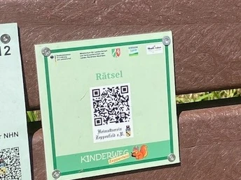 Der Kinderweg Zeppenfeld erstreckt sich über eine Strecke von 1,7 Kilometern und kann in etwa einer Stunde zu Fuß zurückgelegt werden. Der Weg ist gesäumt von sechs interaktiven Erlebnisstationen, die Spiel, Spaß und Naturerfahrung vereinen. Ein besonderes Erlebnis bieten die Bänke entlang des Weges,auf denen Kinder und ihre Eltern Platz nehmen können. Jede Bank ist mit einem QR-Code versehen, der beim Scannen Zugang zu lustigen Kindergeschichten und kniffligen Rätseln bietet. Dies schafft eine besondere Verbindung zwischen Lesevergnügen und der Schönheit der Natur. Ein Highlight des Kinderwegs Zeppenfeld ist die Suche nach Tierfiguren im Hohlweg. Kinder werden ermutigt, auf ihrem Weg nach versteckten Tierfiguren Ausschau zu halten und so spielerisch ihre Beobachtungsgabe und ihren Entdeckergeist zu schärfen. Für kleine Abenteurer, die gerne klettern, bietet der Kinderweg einen aufregenden Kletterfelsen.
