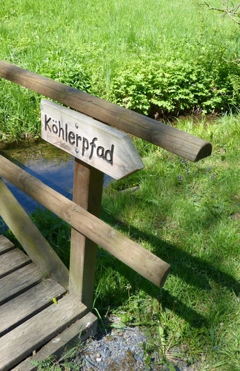 Der Köhlerpfad ist mit dem Zeichen A1 markiert. An einigen Wegkreuzungen weisen Dir zusätzlich hölzerne Wegweiser die Richtung. Für Unterhaltung während der Tour sorgt das Köhlerquiz. Dieses gibt es direkt an der ersten Schautafel des Köhlerpfades. Der Weg ist geeignet für Kinder ab 6 Jahren. Aufgrund der naturnahen Wegbeschaffenheit empfiehlt sich ein geländegängiger Kinderwagen.