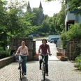 Jetzt geht es immer weiter entlang des Wassers. Nach 2 km erreichen wir die Staumauer mit herrlichem Blick auf die Obernautalsperre und den Wasserentnahmeturm. Ein kurzer Anstieg führt uns hinauf zum Parkplatz der Talsperre. Vor uns auf der rechten Hand liegt nun das Landhaus Heinrichshöh. Hier folgen wir der kurvigen und steilen Abfahrt durch das Wohngebiet. 100 m vor der Hauptstraße (Brauersdorfer Straße) bremsen wir stark ab und biegen links in Höhe des Spielplatzes auf den Radweg ein. Nach ca. 1 km erreichen wir den Ausgangspunkt unserer Tour. Hier besteht die Möglichkeit, vor oder nach der Radtour eine Fülle an Freizeitangeboten zu nutzen: Freizeitbad & Sauna, Fitness & Physio, Indoor-Soccer & Squash, Minigolf-Anlage oder zukünftig auch die neue Trampolinhalle.