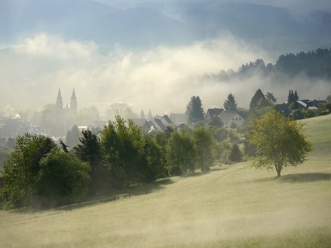 Wir verlassen den Marktplatz durch die Gerbergasse, überqueren die Straße und gehen gerade aus und dann links in die Schützenstraße den "Backes" hinauf. An der Weggabelung geht es nun kurz bergauf, vorbei an dem Sportplatz. Nun haben wir die Höhe geschafft und wir folgen dem Weg bis wir auf die Kreisstraße kommen, die sich oberhalb der Siedlung befindet. Vorsicht ist beim Überqueren der Straße geboten. Nun folgen wir ein Stück der Brachthäuser Straße, bis es rechts hoch in die Siedlung geht. Egal, ob man der Straße links oder rechts folgt. In der Kurve oberhalb des Siedlergemeinschaftshauses geht es wieder in den Wald hinein. Zunächst durch Wald, gelangen wir zu den Feldern An der Sang. Eine herrliche Aussicht auf die Windräder, Hilchenbach und das Stadtzentrum lädt zu einer Rast ein. Für den Rückweg zum Ausgangspunkt folgen wir der Straße An der Sang bergab, an der Kirche vorbei zum Marktplatz.